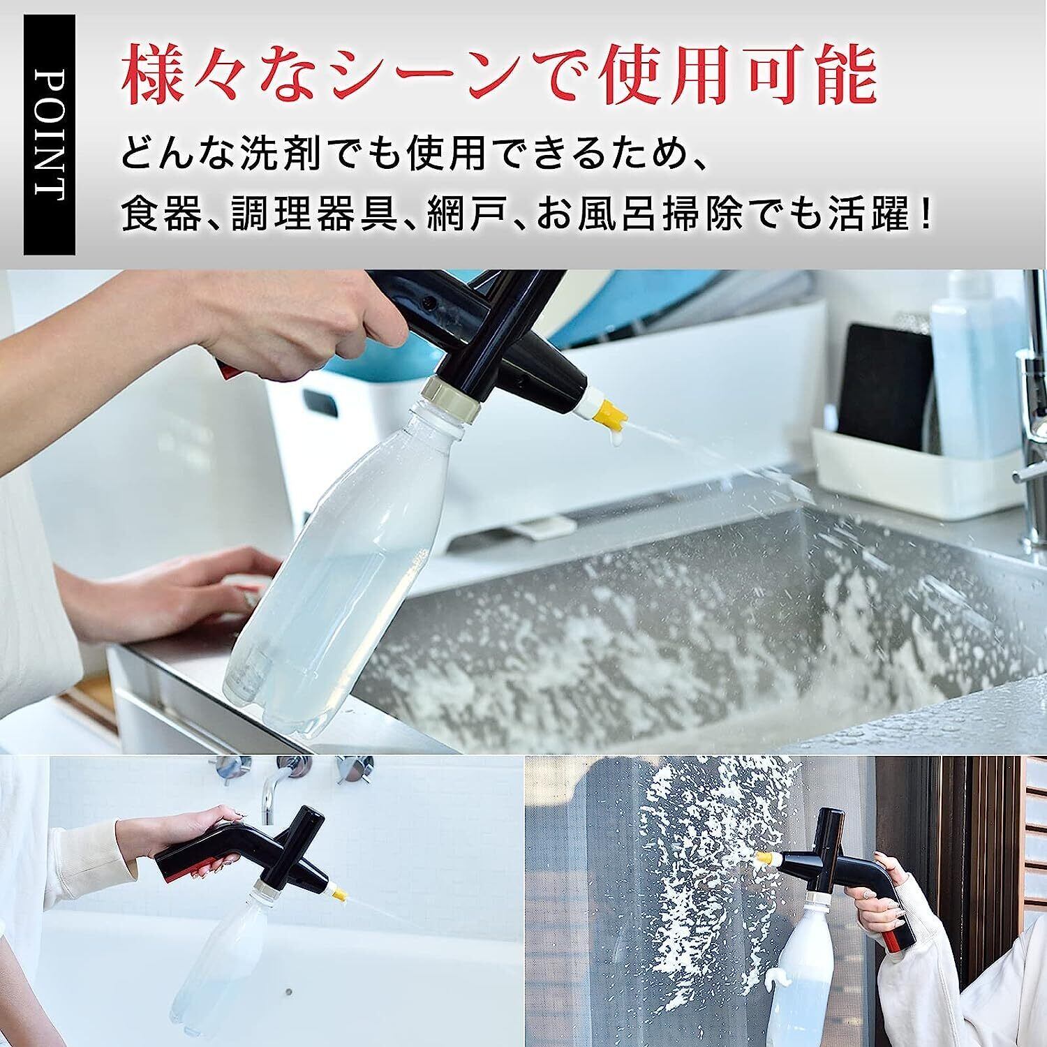 【電動式で簡単に泡洗浄が可能】ほとんどの市販洗剤を泡として噴出できるオールマイティクリーニングツール。ペットボトル(炭酸飲料用500mlペットボトルを推奨)で使用可能です。よくある泡洗浄機のように専用の洗剤を必要とせず、市販の洗剤を水道水で希釈して使用できるため費用も抑えられます。
